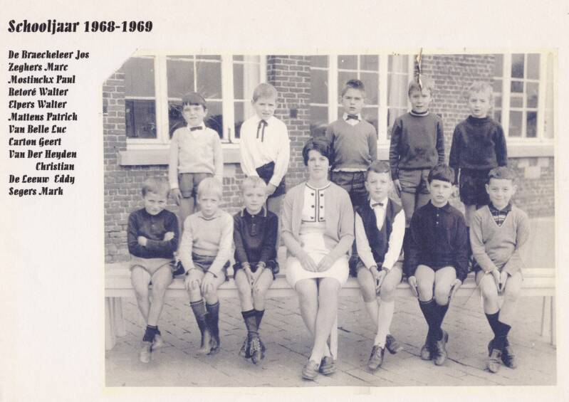 We tonen hier een foto van de gemeentelijke jongensschool Eizeringen uit 1968 1969 met juffrouw Wauters Christiane. De vraag momenteel is wie zit boven van links nr rechts en wie zit onder van links nr rechts?