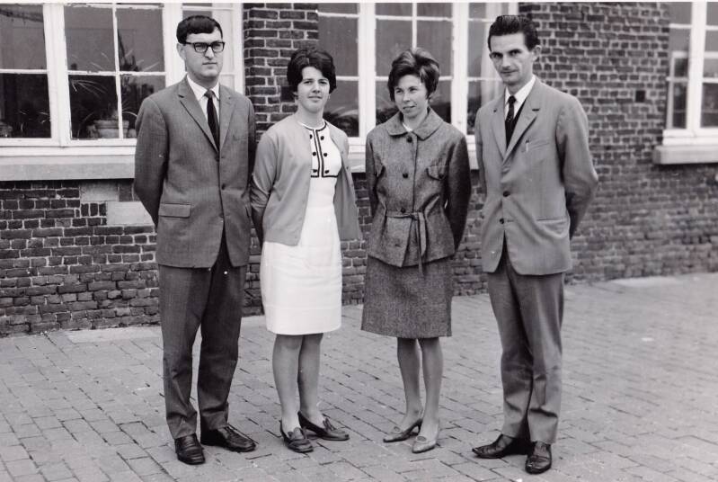Het lerarenkorps uit 1968 vLnrR meester Carlier Jos, juffrouw Wauters Christiane, juffrouw Van Vaerenbergh Cecile, meester Heremans Jean. (gemeentelijke jongensschool Eizeringen)